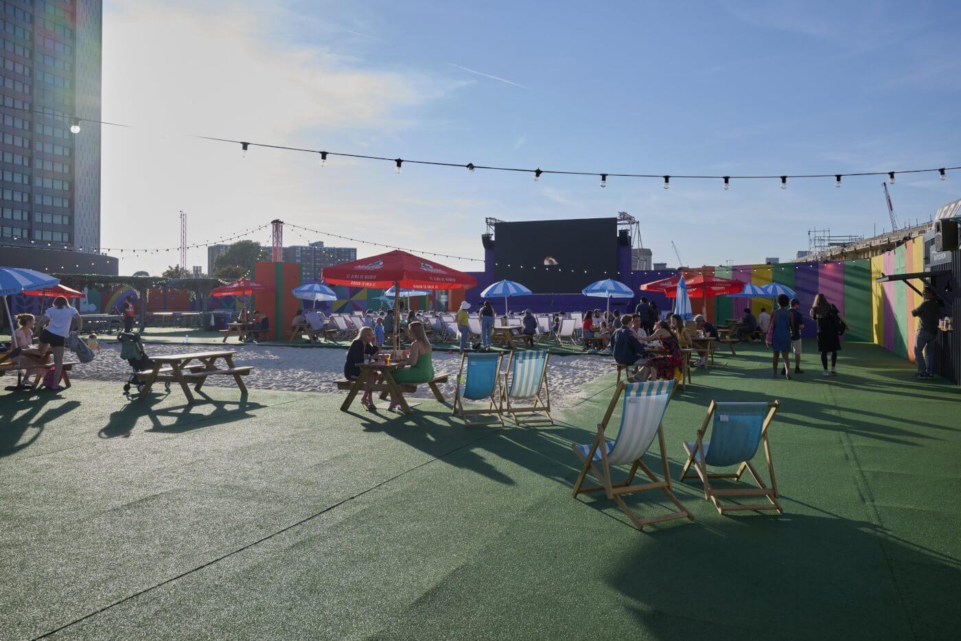 As the Cow went up to Edinburgh for this year’s Fringe, Underbelly Festival Earls Court transformed into a free open-air cinema. With a selection of films daily to suit all tastes, it kept everyone entertained all summer long. The line-up of films included: Encanto, Dirty Dancing, Paddington, Grease, Jaws and many more! The space was also home to our much-loved city beach.