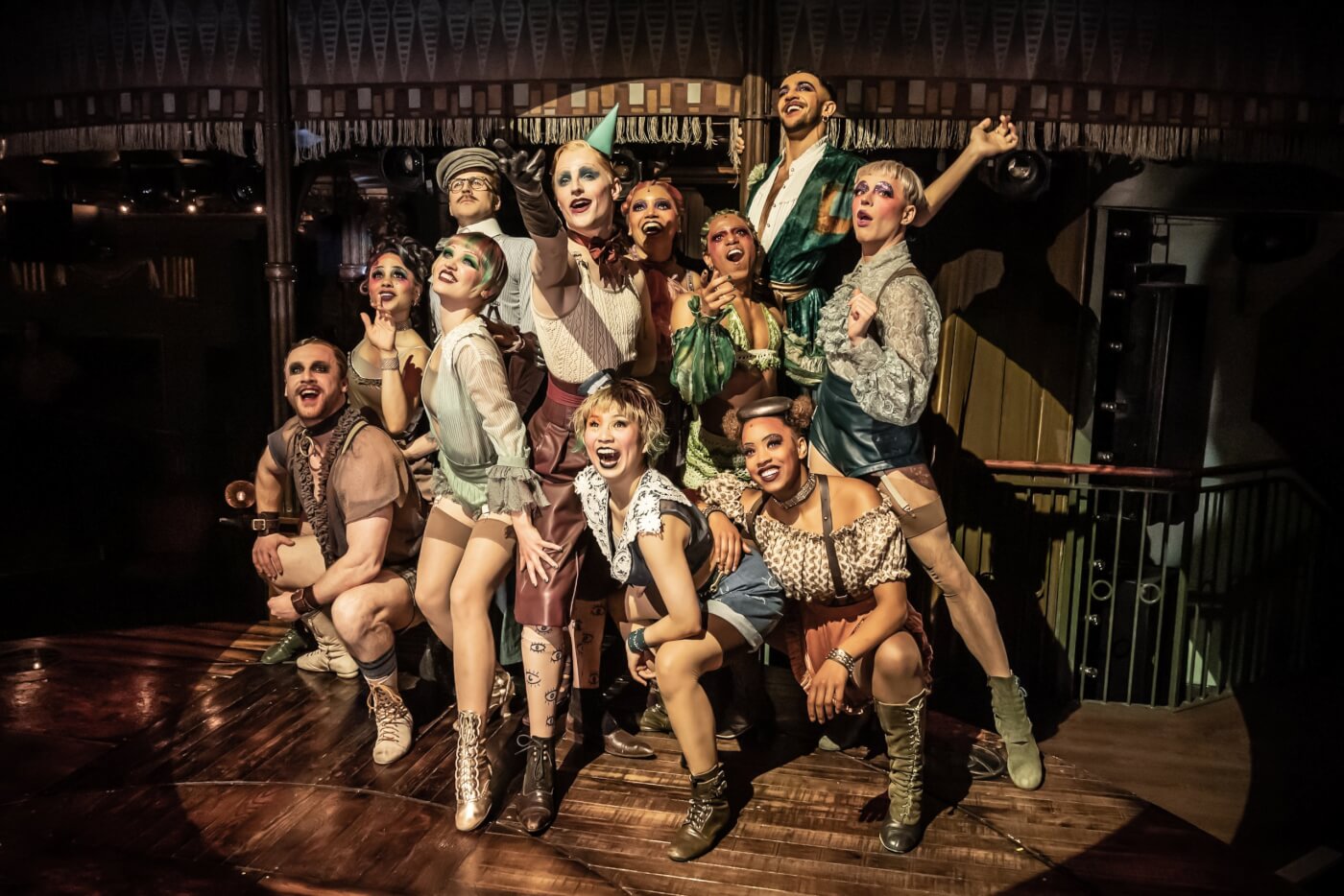 Inside the Kit Kat Club, life is beautiful. The famous setting of Kander & Ebb and Masteroff’s musical is brought to life in London’s West End. Initial cast included Eddie Redmayne and Jessie Buckley, now starring Aimee Lou Wood and John McCrea.